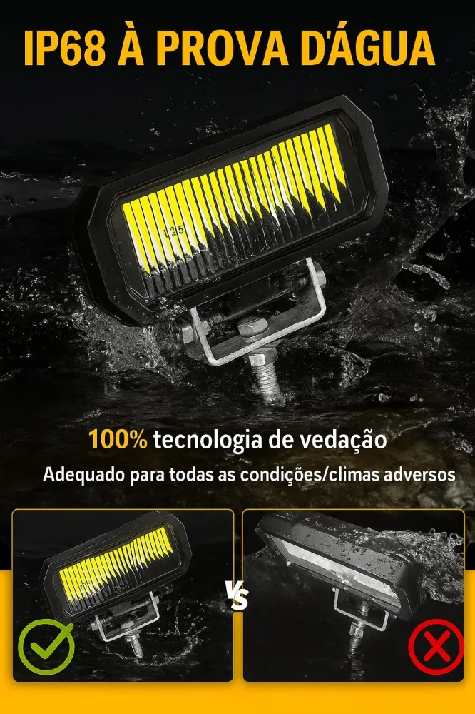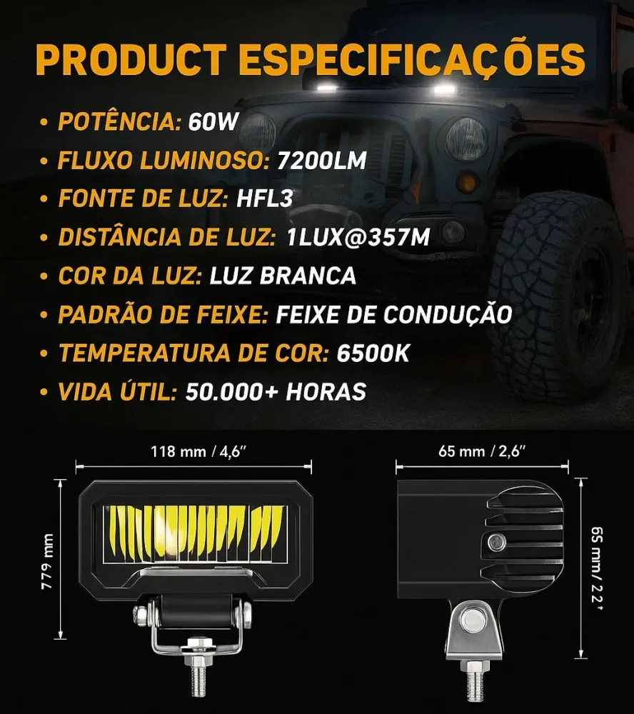 Brilho Confiável: Total de 60 watts, com desempenho de iluminação de 7200LM/conjunto. Oferece uma luz confiável, mais brilhante e duradoura, além de uma área de visualização mais clara, ampla e ampla. Vida útil superior a 50.000 horas.