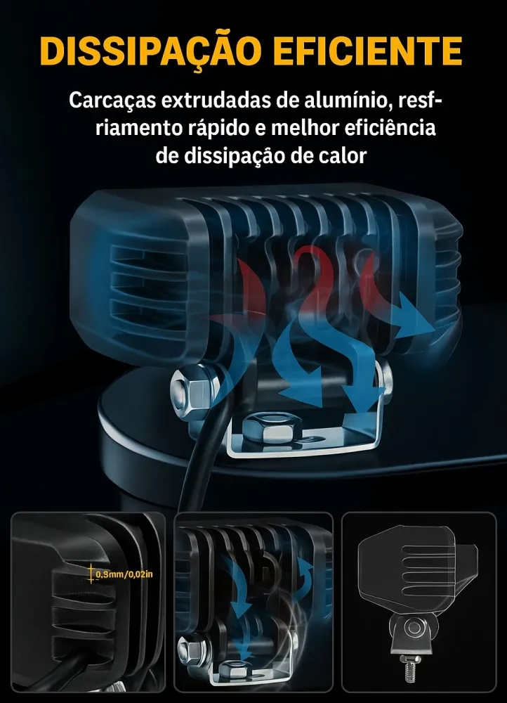 Desempenho Excepcional: Chips de LED HFL3 com alta intensidade e visibilidade perfeita, a opção perfeita para iluminação de direção em LED. Design patenteado com copo de ângulo duplo. Dois designs diferentes de ângulo do copo refletor, com saída de luz aumentada em 10%.
